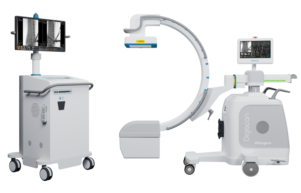 Allengers C-Arm with Flat Panel Detector (FPD) embedded with Digital Subtraction Angiography (DSA) is an advanced medical imaging system designed for high-quality fluoroscopic and angiographic procedures. It combines the mobility of a C-Arm with the superior imaging capabilities of flat panel detectors and the specialized vascular imaging of DSA.