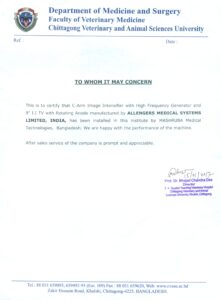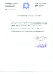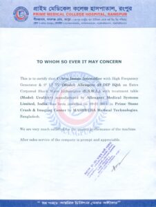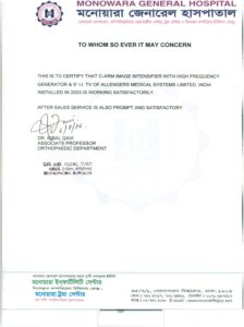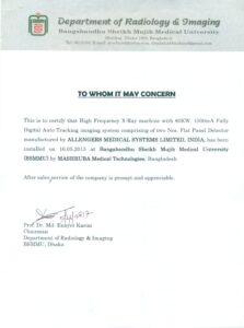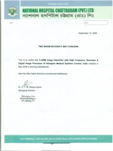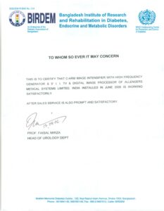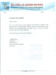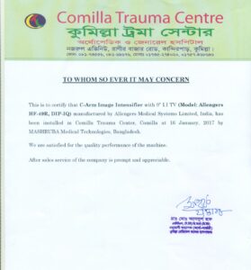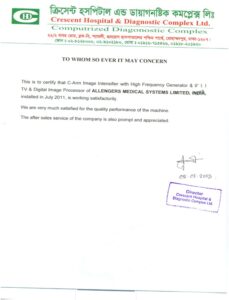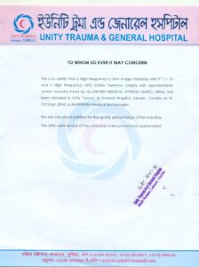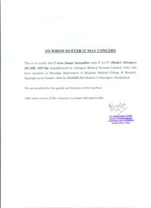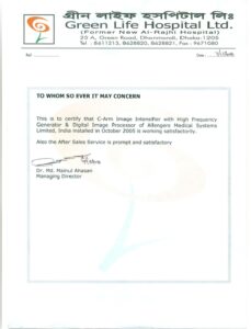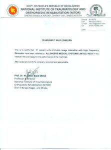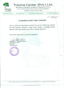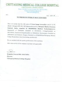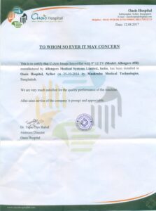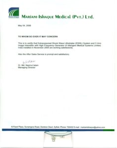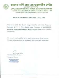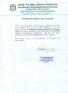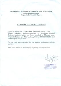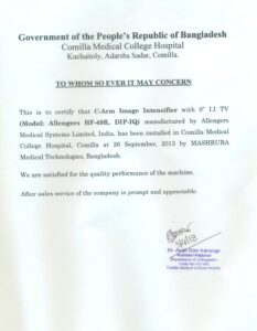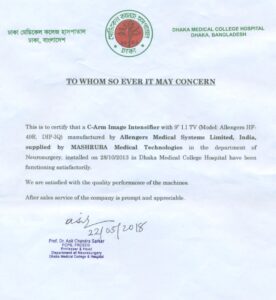 MASHRUBA Medical Technologies got a good reputation and performance certificates from a number of hospitals in Bangladesh.